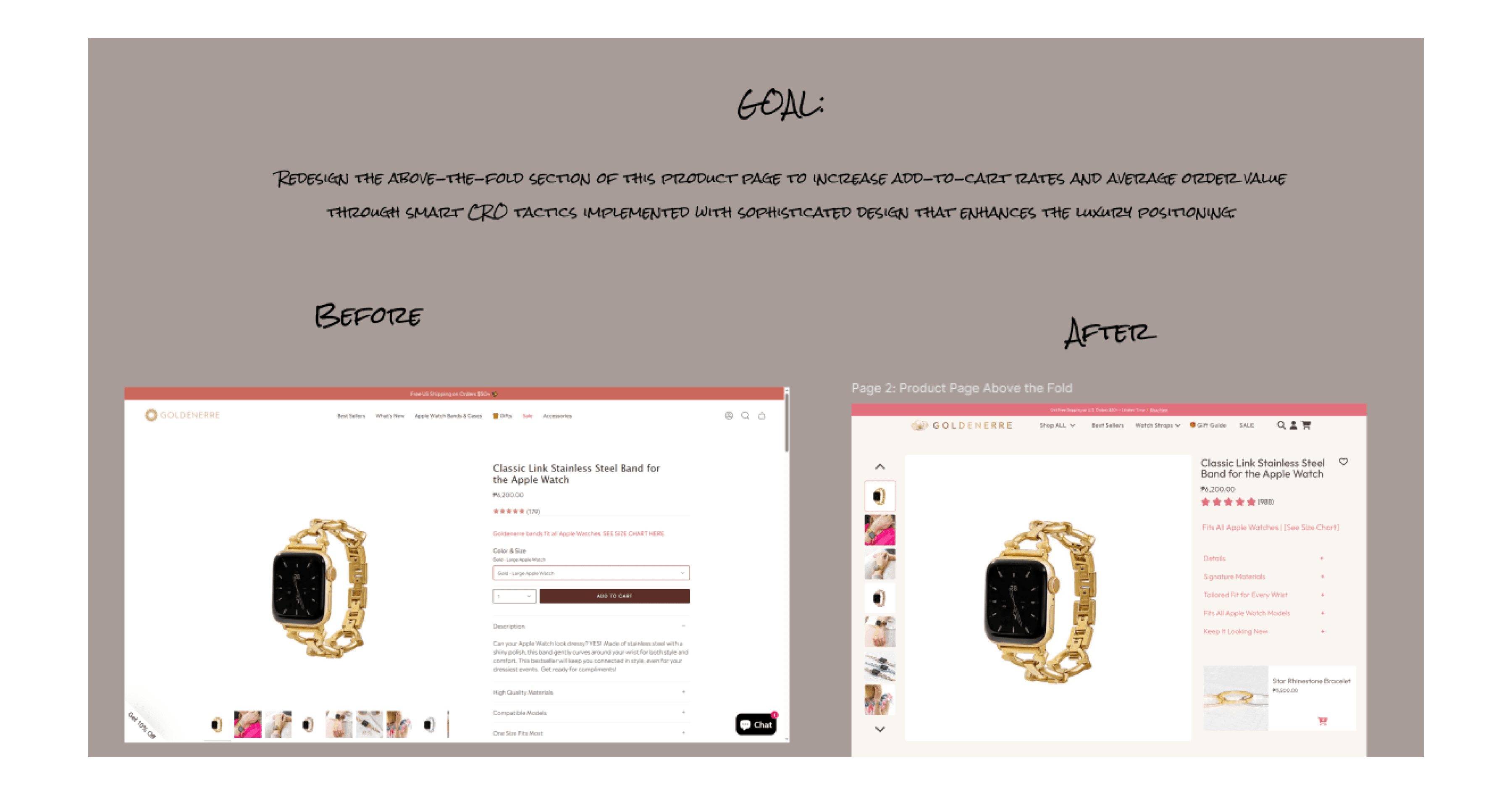 CRO Integration: Added social proof, urgency cues, and optimized ATC placement while maintaining the luxury feel.